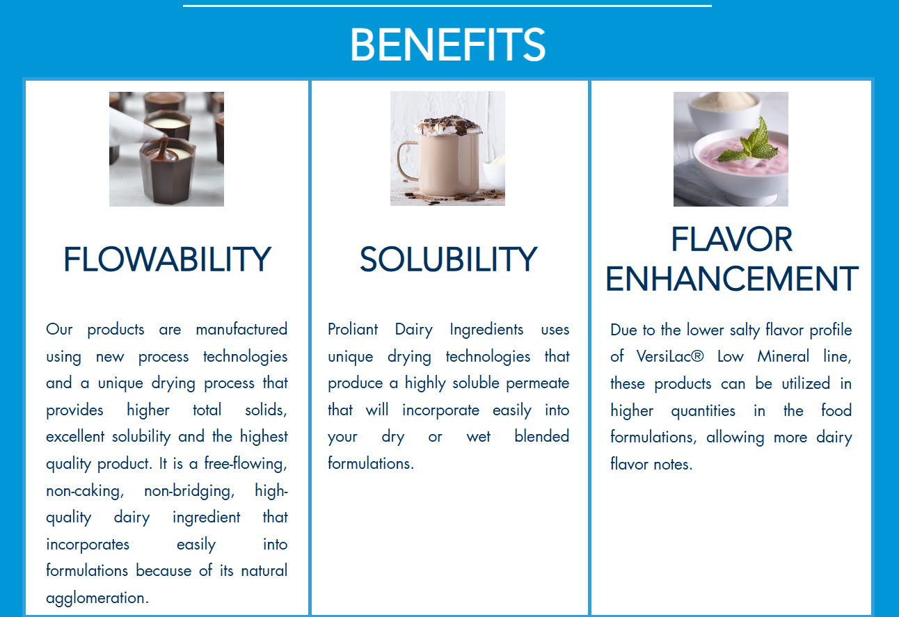 Superior Flavor: With a lower mineral load, VersiLac LM7 delivers a cleaner taste that enhances a wide variety of food applications.